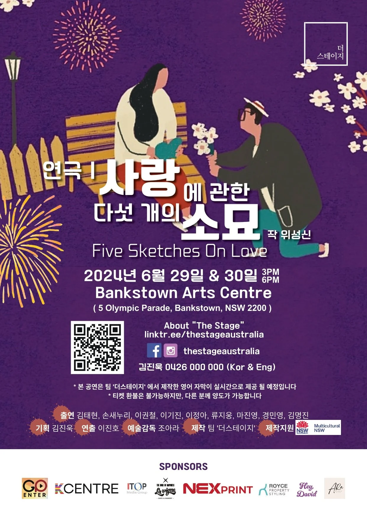 Five Sketches On Love 30 June Written By 더스테이지 The Stage Theatre Company . Five Sketches On Love사랑에 관한 다섯 개의 소묘Bankstown Arts Centre (5 Olympic Parade, Bankstown, NSW 2200)29 - 30 June 2024 더스테이지 The Stage Theatre Company .